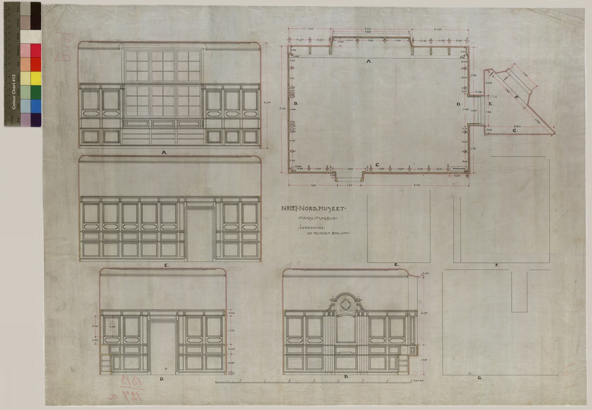 No 127 Nord. Museet. Kansliflygeln. Inredning af rummet 1 tr upp.