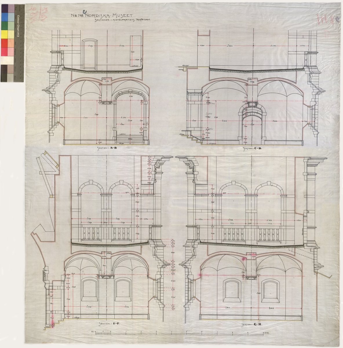 No 148. Nordiska Museet. Sektioner i Midtelpartiets trapptorn.