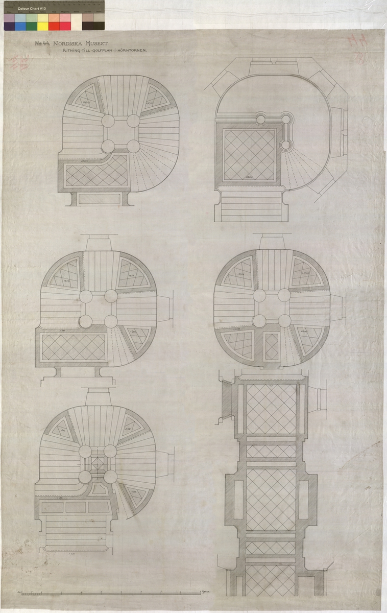 No 44 Nordiska museet. Ritning till golfplan i hörntornen.