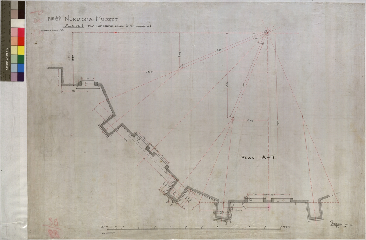 No 89 Nordiska museet. Absiden. Plan af nedre delen öfver graniten.