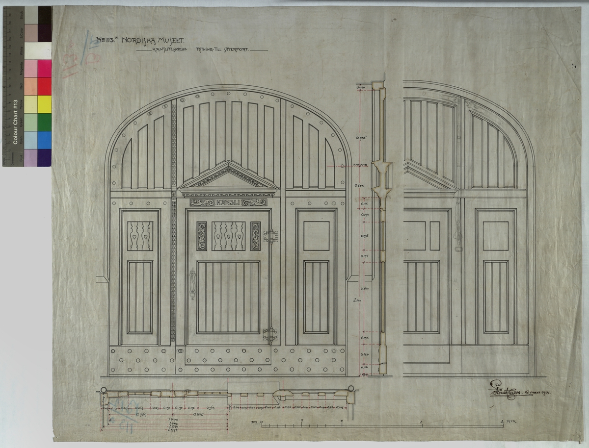 No 113. Nordiska Museet. Kansliflygeln. Ritning till Ytterport.
