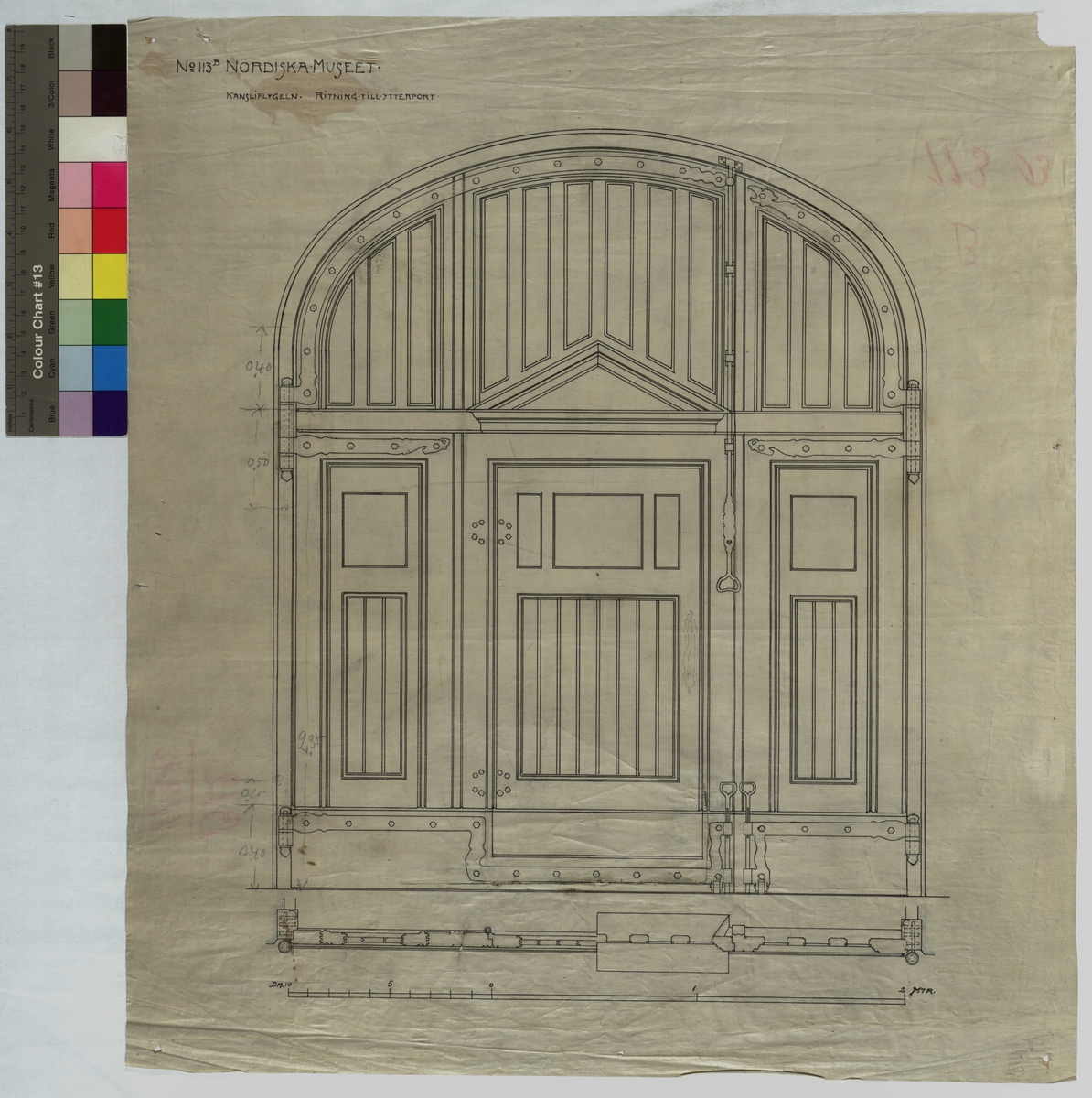 No 113. Nordiska Museet. Kansliflygeln. Ritning till Ytterport.