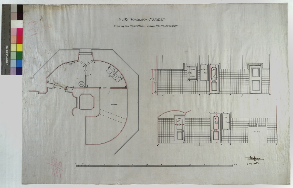 No 193 Nordiska museet Ritning till toilettrum i Sydvästra trapptornet.