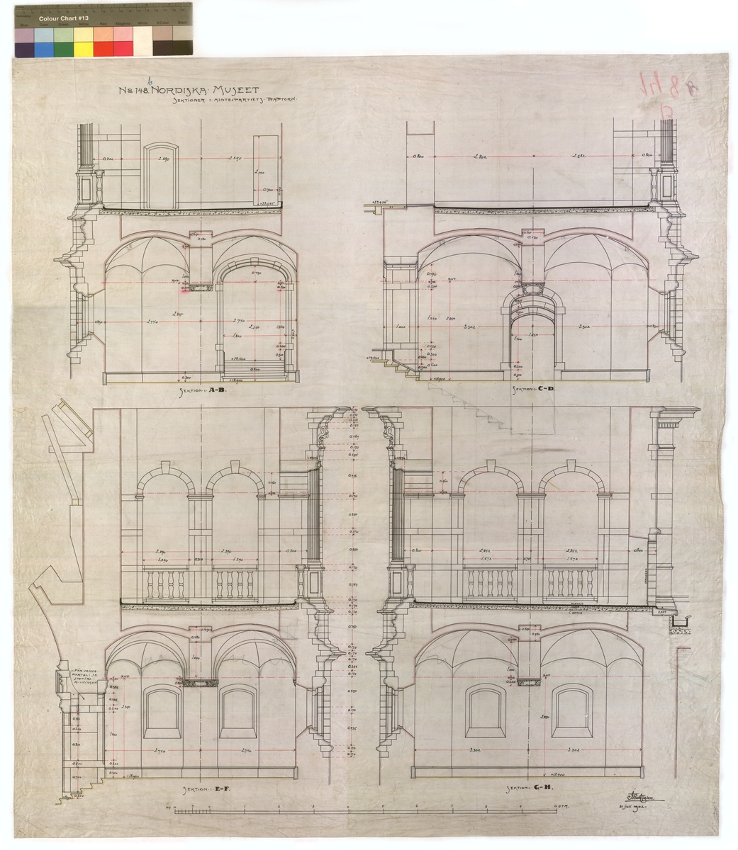 No 148. Nordiska Museet. Sektioner i Midtelpartiets trapptorn.