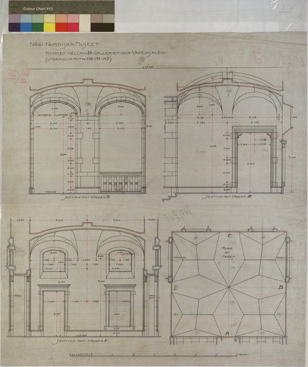 No 161 Nordiska Museet. Rummet mellan 1sta Galleriet och Vapensalen (Utdrag ur ritn no 139.149) Plan af taket.