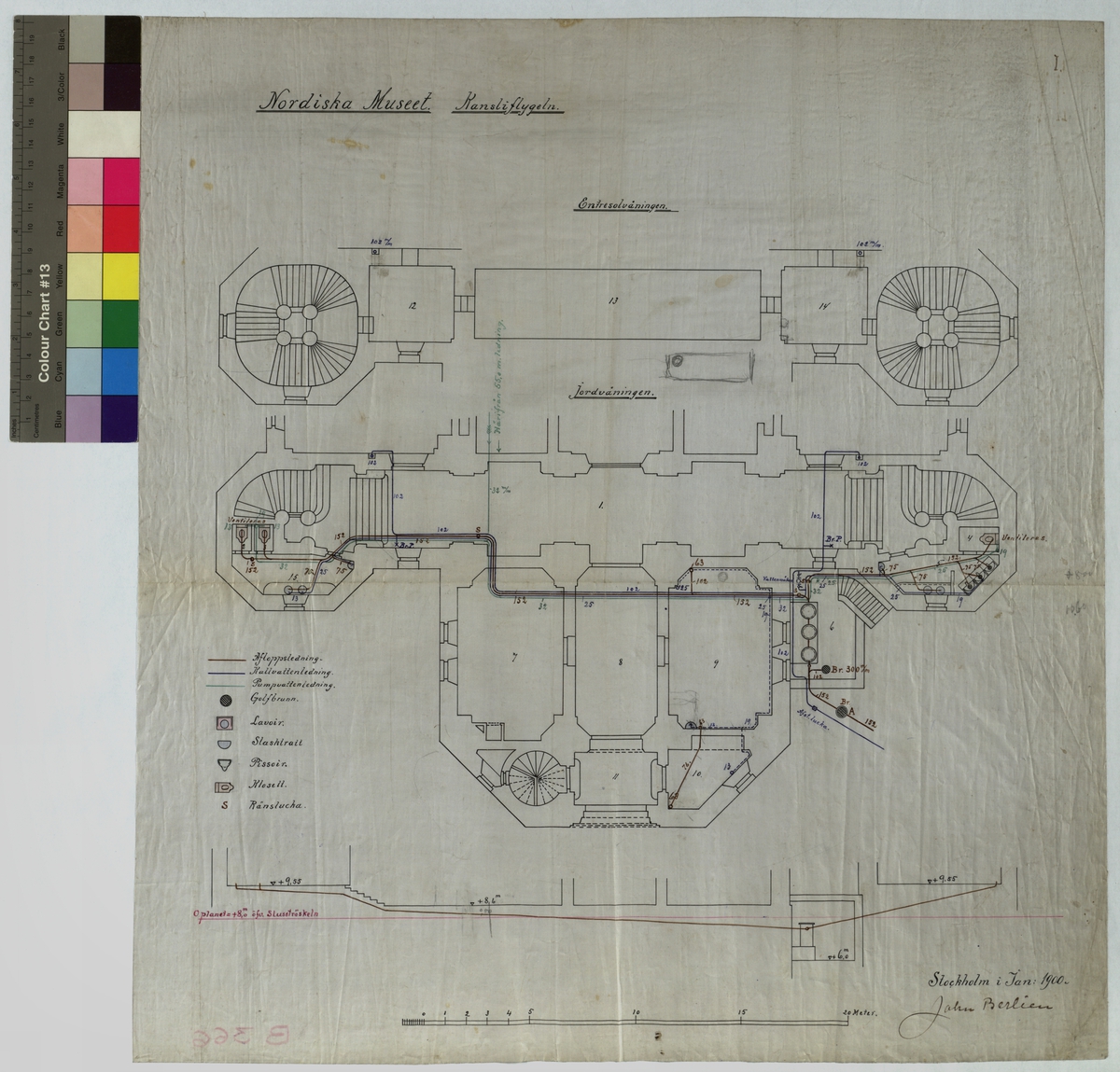 Nordiska Museet. Kansliflygeln. Entresolvåningen. Jordvåningen