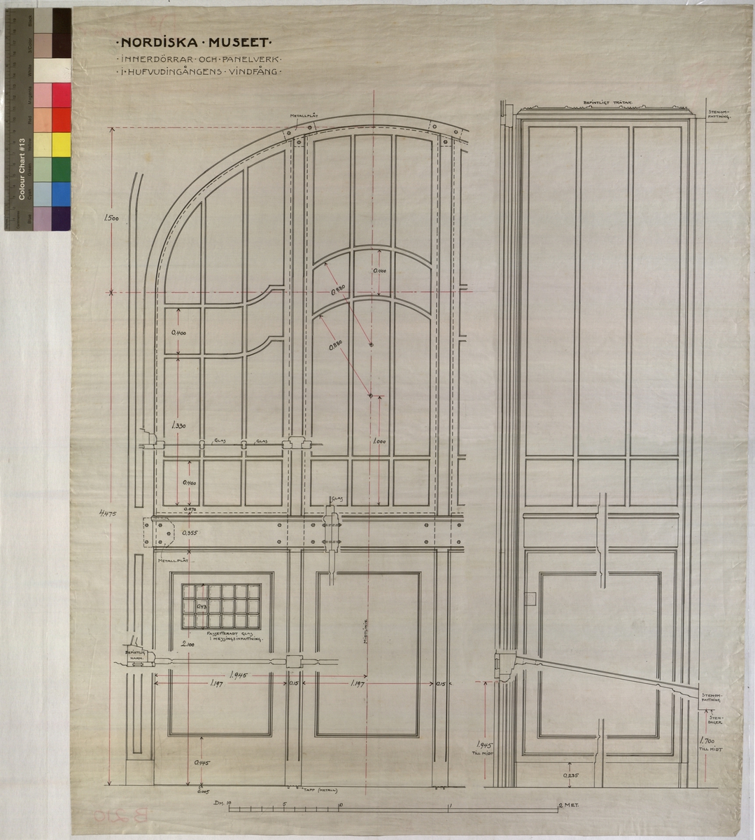 Nordiska Museet. Innerdörrar och panelverk i hufvudingångens vindfång