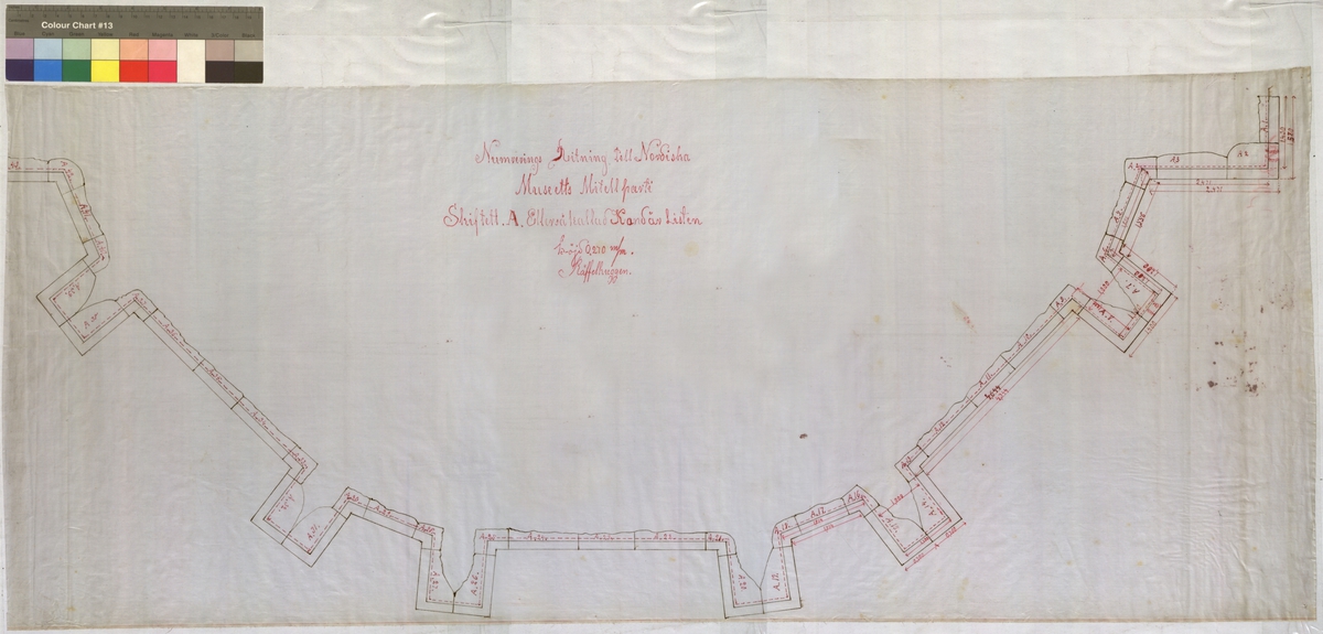 Numrerings Ritning till Nordiska Museetts Mittellparti Skiftett A eller såkallad Kandårlisten. Räffelhuggen