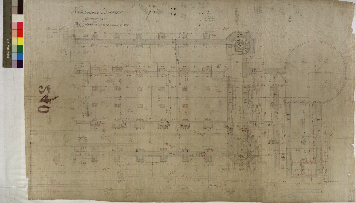 Nordiska Museet. Grundplan af byggnadens nordvestra del.