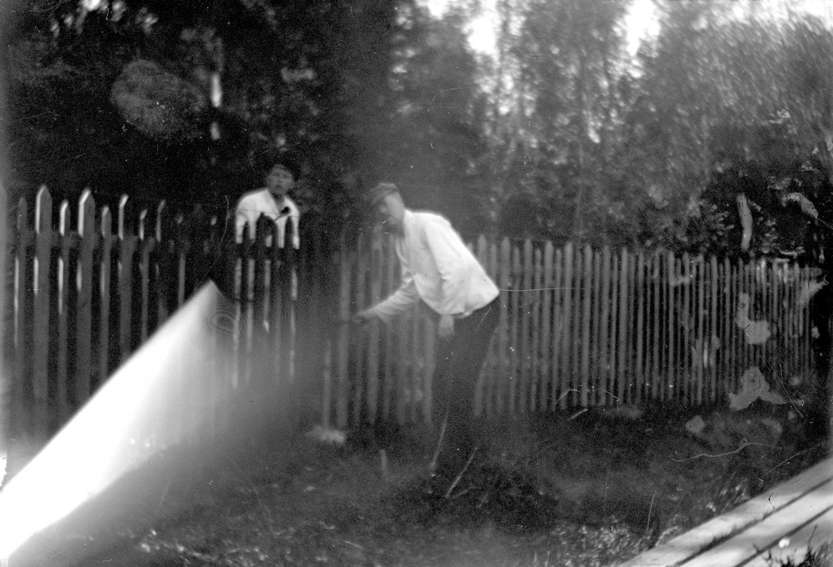 En man och en pojke målar ett staket.