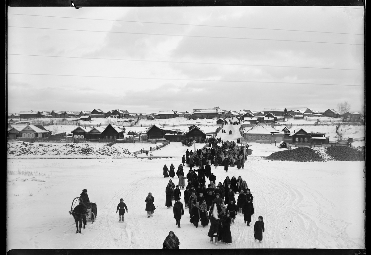 Värnpliktiga som ska inkallas följs en bit på vägen av sina anhöriga. Nischnij-Tagil, Ural, Ryssland.