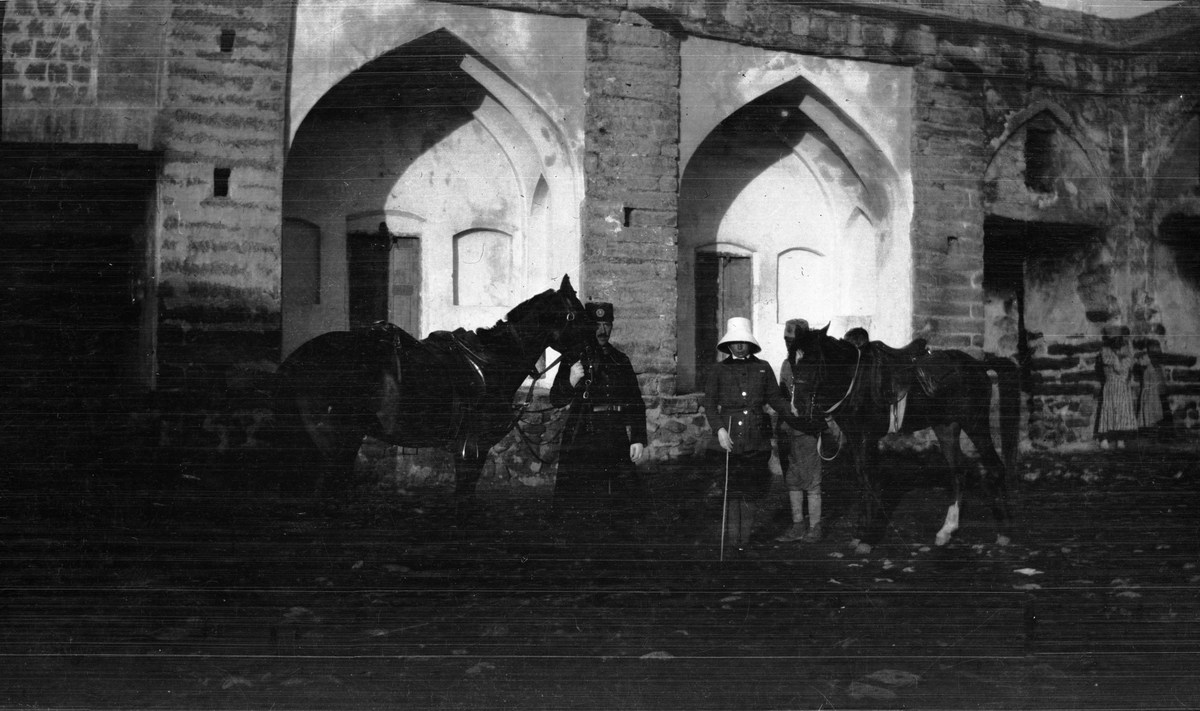 Persien. Officeren i det persiska gendarmeriet Allan Uggla och hans hustru Ida håller i var sin häst.