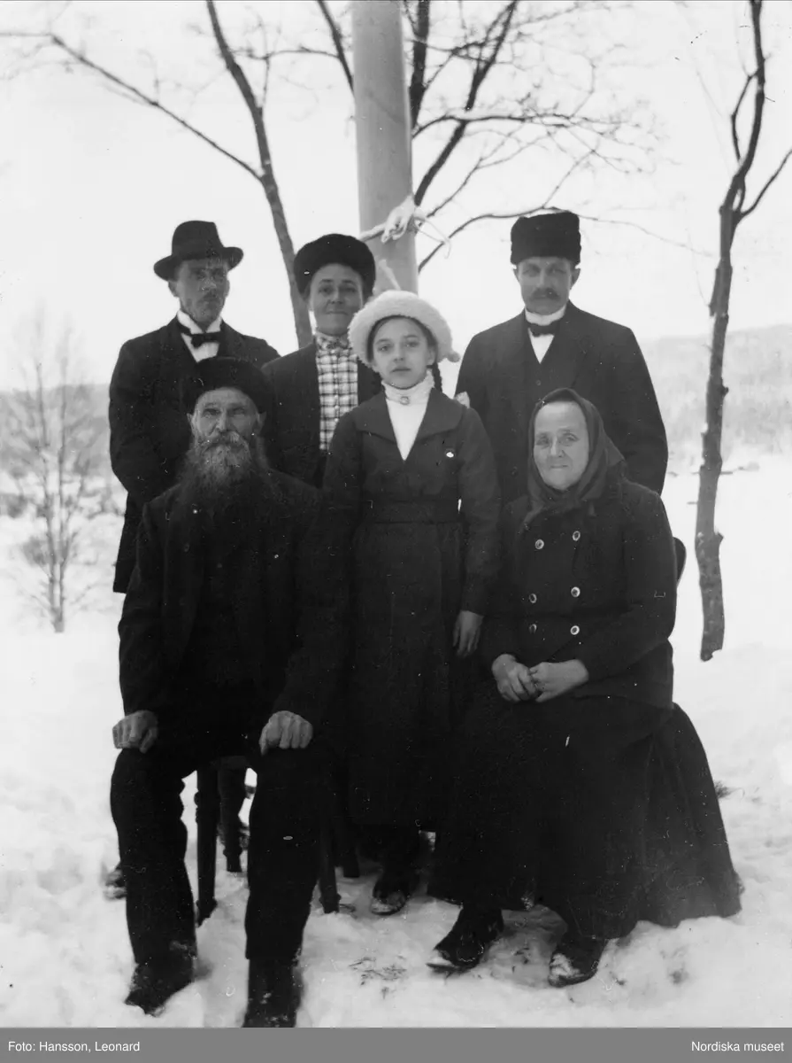 Brus Lars Larsson f. 1854 med hustrun Sara och barnen Lorentz och Märta med familj. Lima, Dalarna.