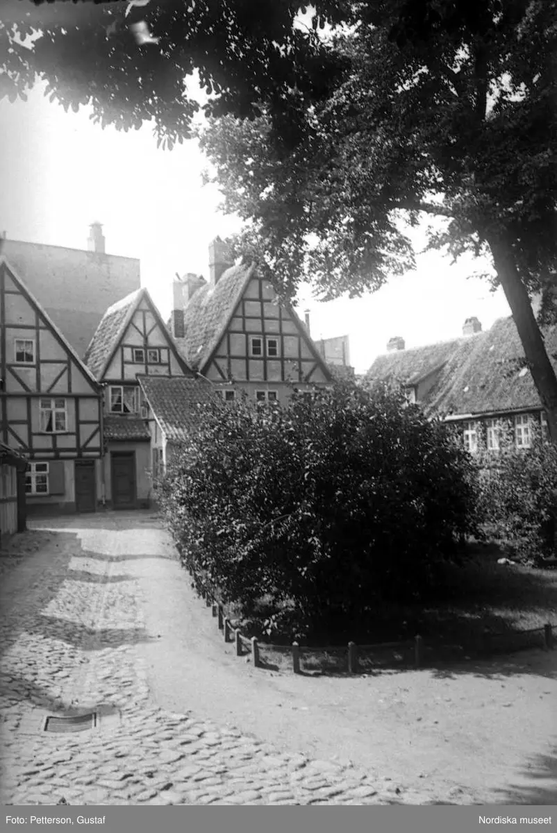 Vy från norra Tyskland, Stralsund. Klostergård framför Johanniskirche fri gård.