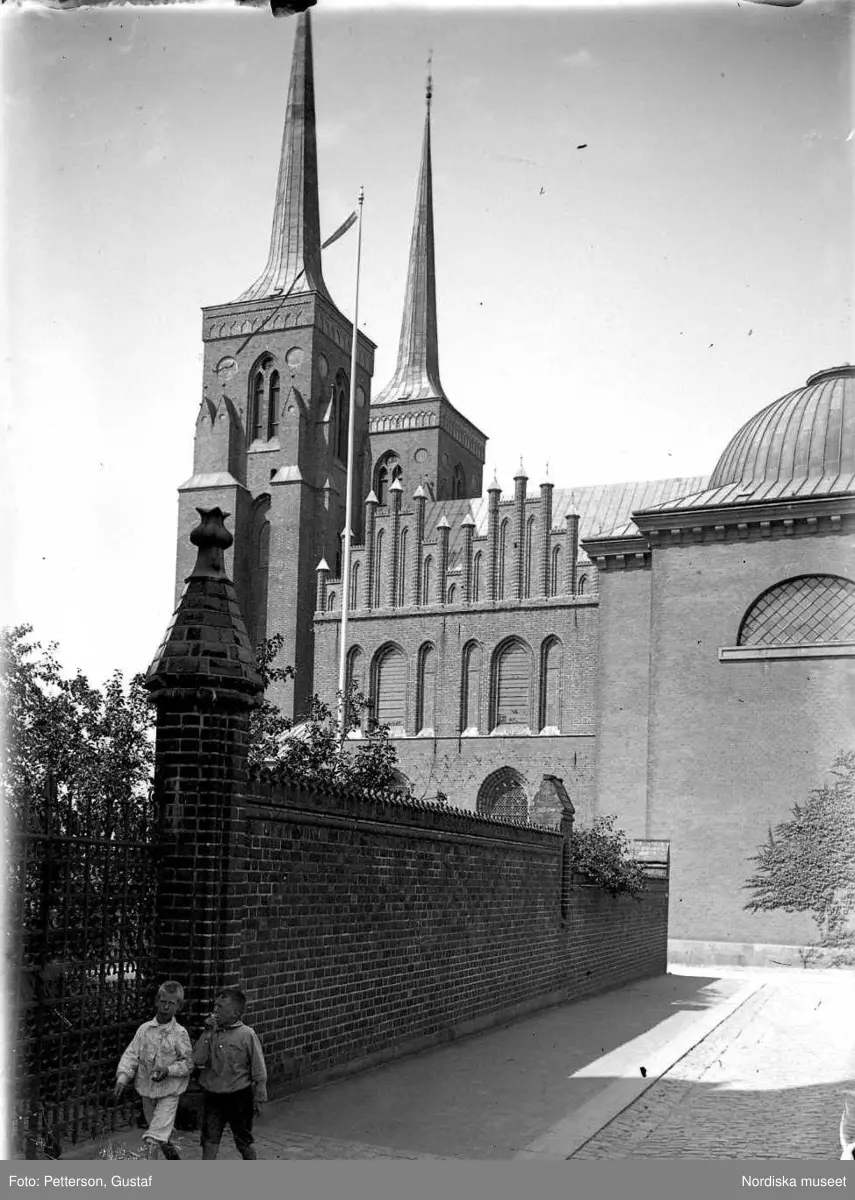 Vy från Danmark, Roskilde. Domkyrkan södra sidan torn och kapell.