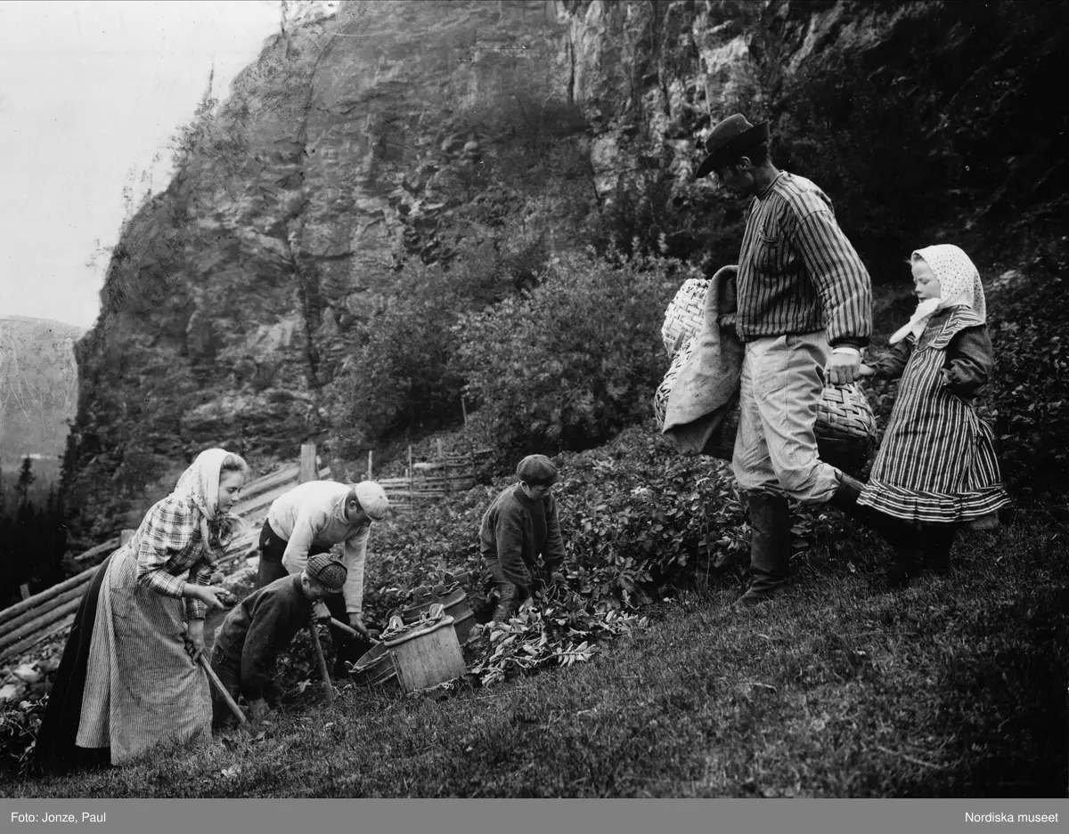 Potatisupptagning i Tännäs, Härjedalen. Riksdagsman Ingebrekt Bergman med familj.