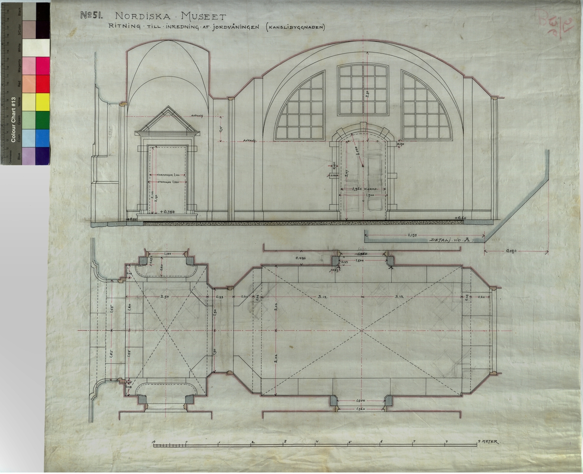 No 51 Nordiska Museet. Ritning till inredning af jordvåningen (kanslibyggnaden).