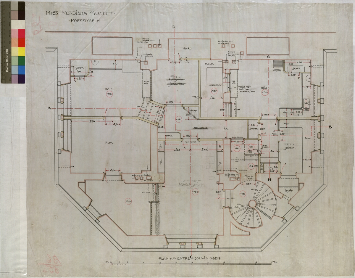 No 55. Nordiska museet. Kafeflygeln. Plan af Entre-solvåningen.