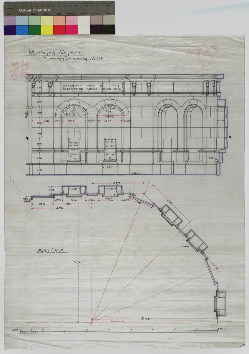 Nordiska Museet. Utdrag ur Ritning No 134. Material för inskription ABCDE
