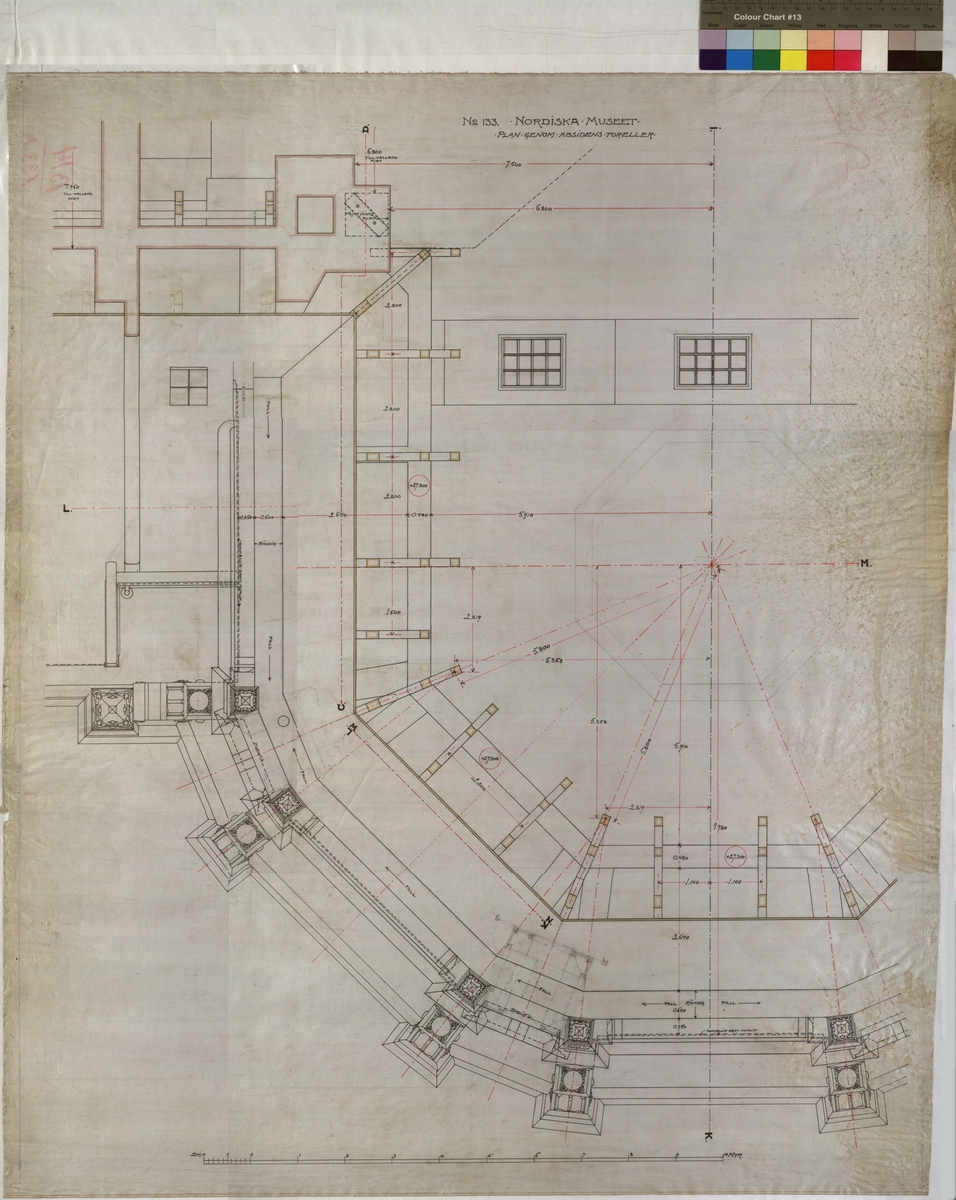 No 133. Nordiska Museet. Plan genom absidens toreller.