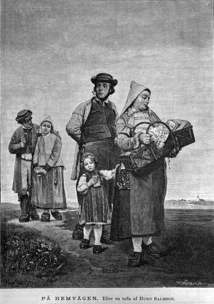 "På hemvägen" Efter en tafla av Hugo Salmson. Signerad M.Weber.