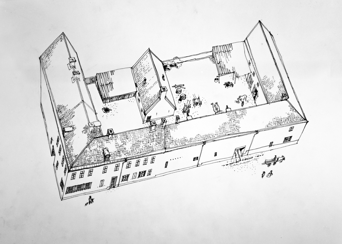 Rekonstruktion av Nürnbergs bryggeri på Högbergsgatan, Stockholm, utförd av Ove Hidemark 1973 på grundval av fotografier i Nordiska museets arkiv och Stockholms stadsmuseum.