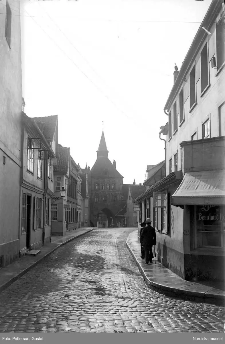 Vy från norra Tyskland, Stralsund. Heilgeist Strasse Küterthor (fond).