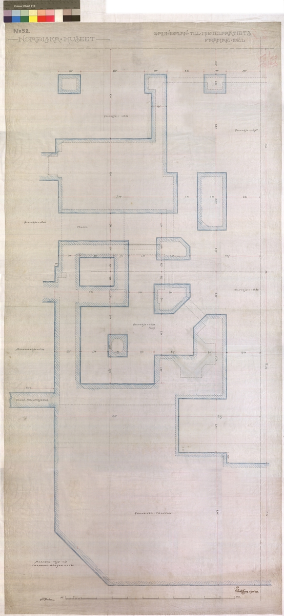 No 52 Nordiska Museet. Grundplan till Midtelpartiets främre del.
