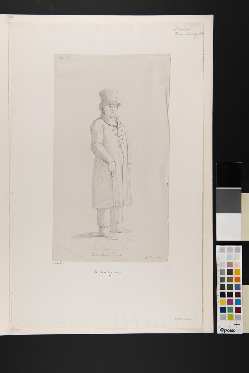 Dräkt. "Tas Jeppson Örja, Rönnebergs hd" Blyertsteckning av Otto Wallgren.