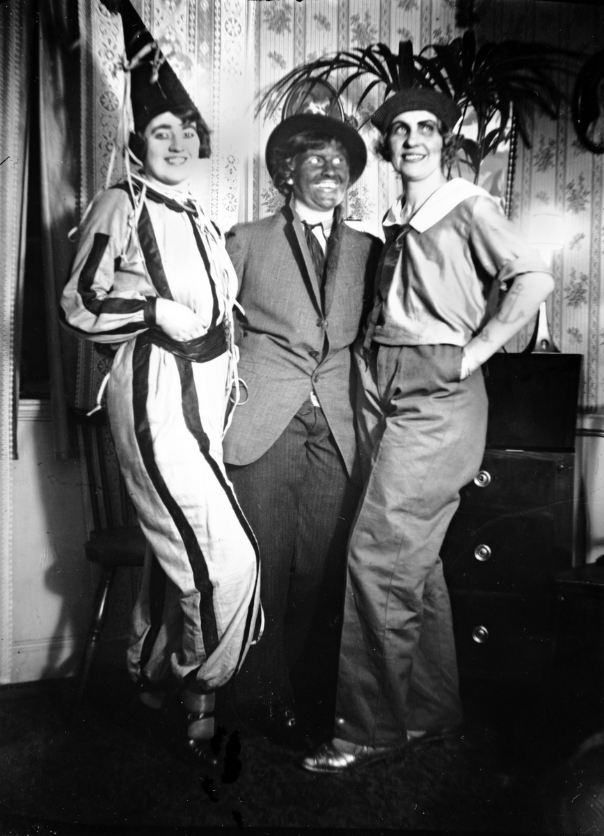 "Maskerad, Märta och Sonja Grundberg och Ingeborg Blomquist. Clevegränd 3B."