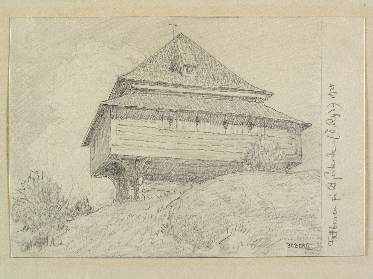Teckning av Ferdinand Boberg. Östergötland, Skärkinds hd., Ö. Ryds sn., Björkvik
