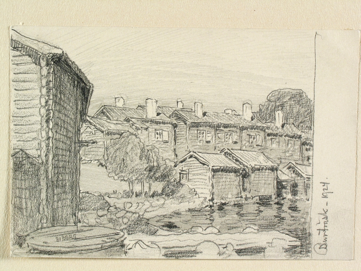 Västerbotten, Burträsks sn., Kyrkstaden. Teckning av Ferdinand Boberg