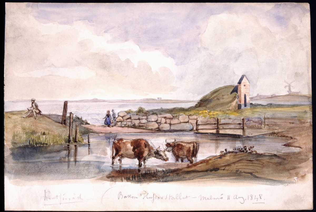 Krutförråd bakom Husarstallet. Malmö 11 augusti 1848. Akvarell av Fritz von Dardel, 1848