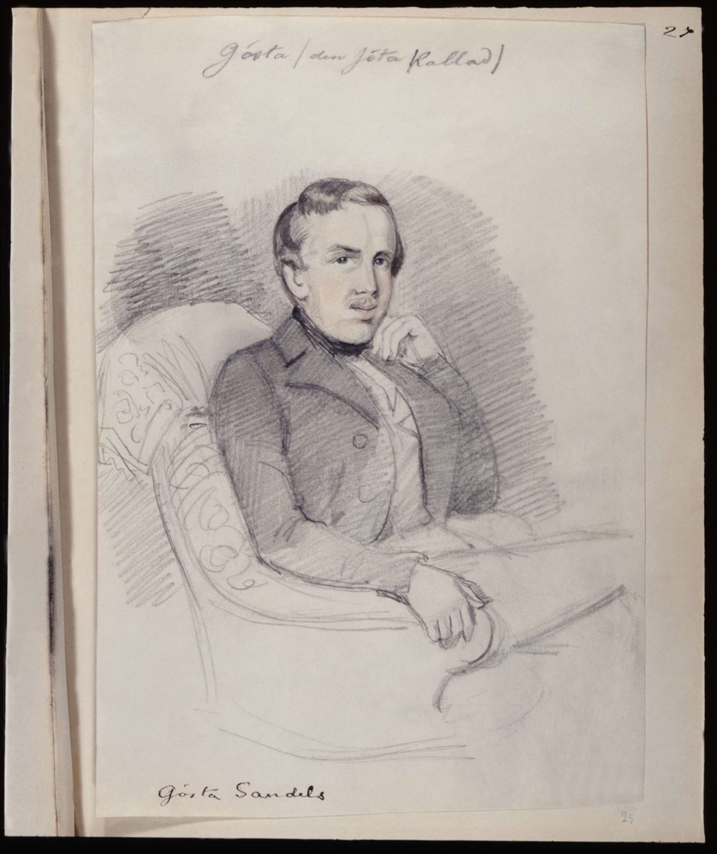 "Gösta den söta kallad". Porträtt av Gösta Sandels. Akvarell av Fritz von Dardel