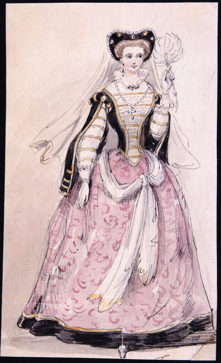 Titel: "Helbild på kvinna i rosa klänning." Akvarell av Fritz von Dardel