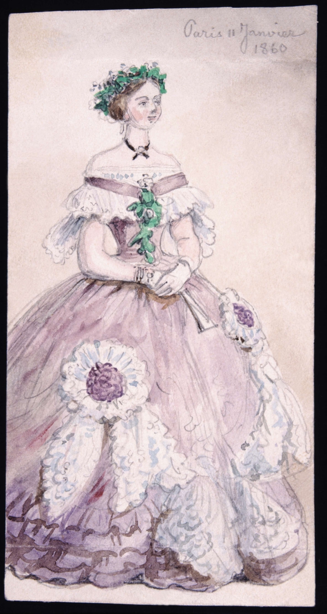 Paris Janvier 1860. Toilette de Mme de Dardel." Akvarell av Fritz von Dardel, 1860