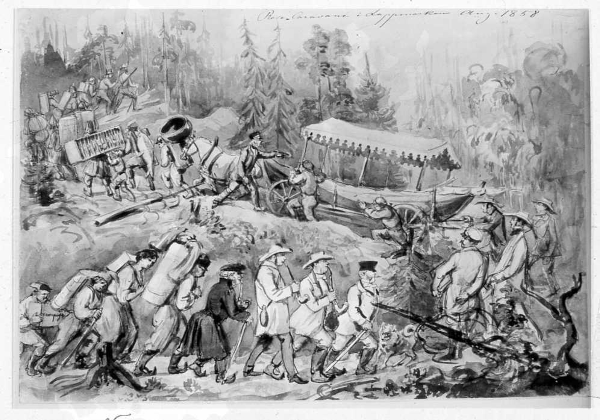 Akvarell av Fritz von Dardel. "Rese-Caravane i Lappmarken Aug. 1858".