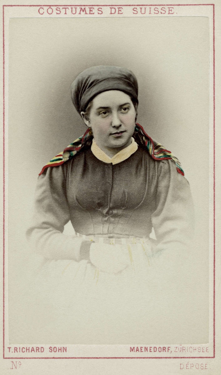 Porträtt på en kvinna i en Schweizisk dräkt