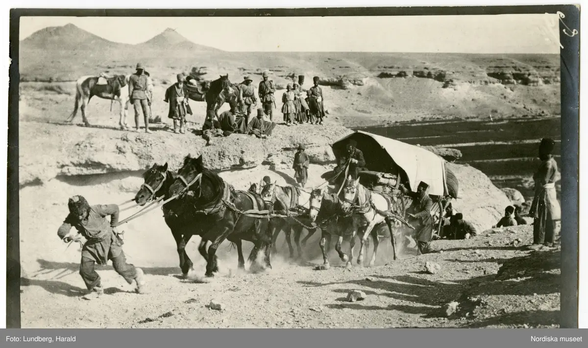 Persien. Ett hästekipage tar sig uppför en backe. Berg i bakgrunden.