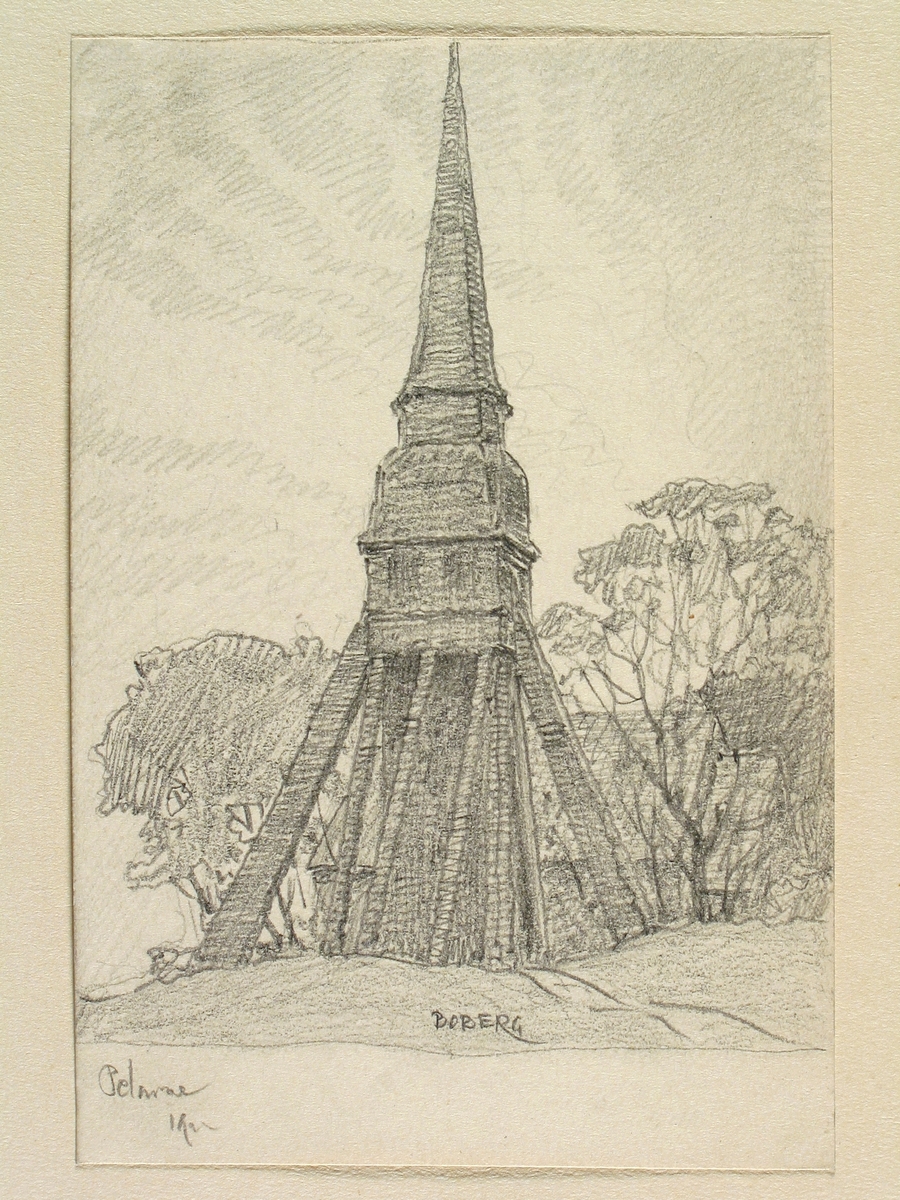 Teckning av Ferdinand Boberg. Småland, Sevede hd., Pelarne k:a, Stapeln