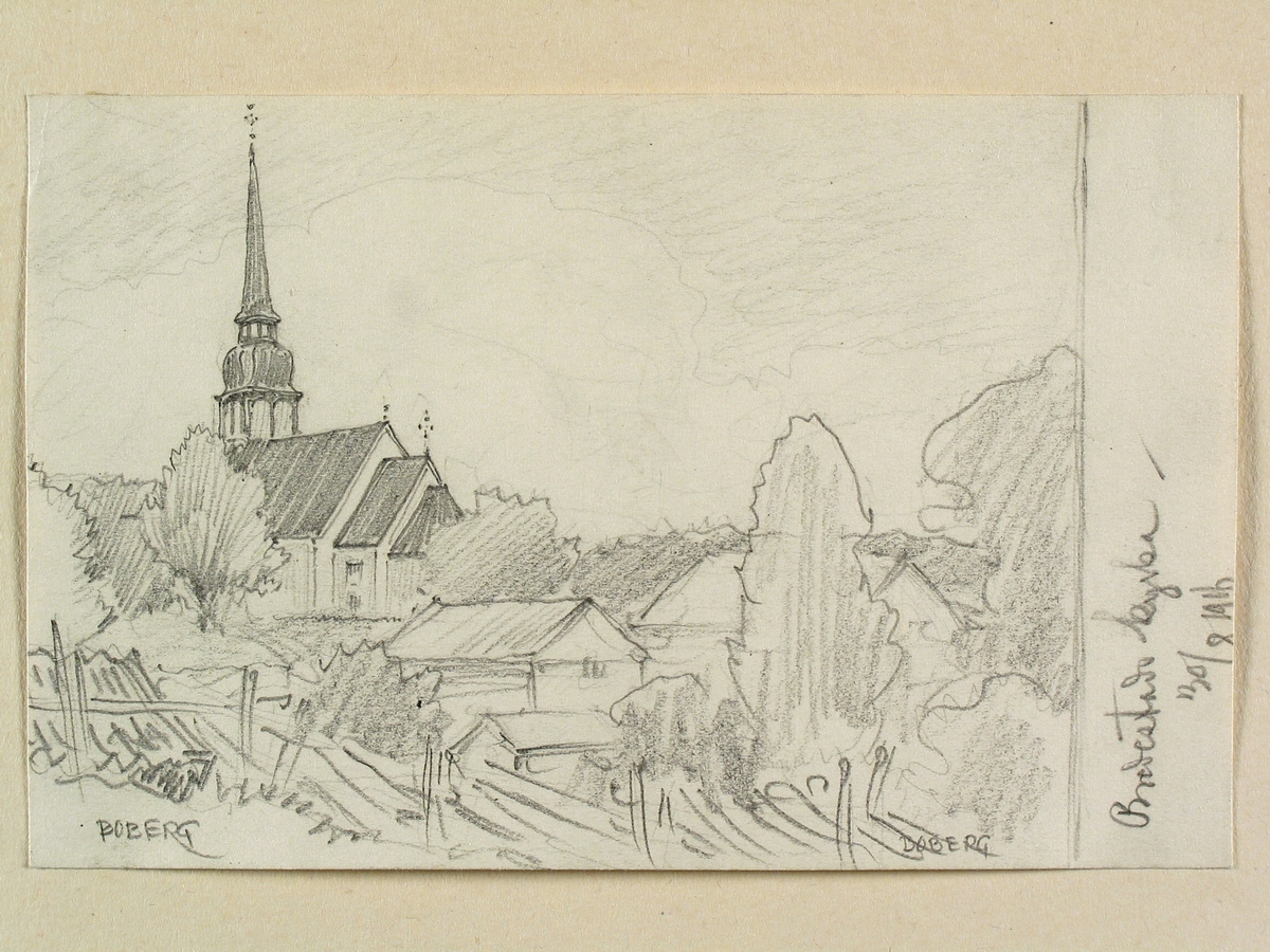 Teckning av Ferdinand Boberg. Småland, N. Vedbo hd., Bredestads kyrka