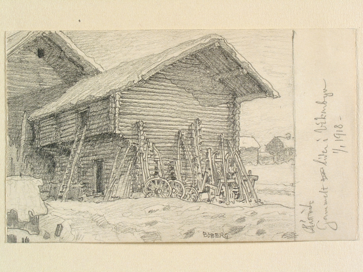 Dalarna, Rättviks sn. "Gammalt lider i Vikarbyn". Teckning av Ferdinand Boberg
