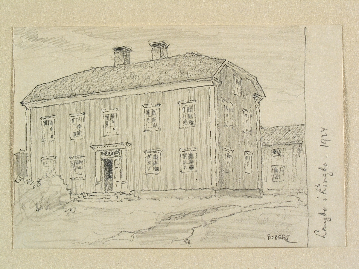 Hälsingland, Skogs sn. "Långbo i Lingbo". Teckning av Ferdinand Boberg