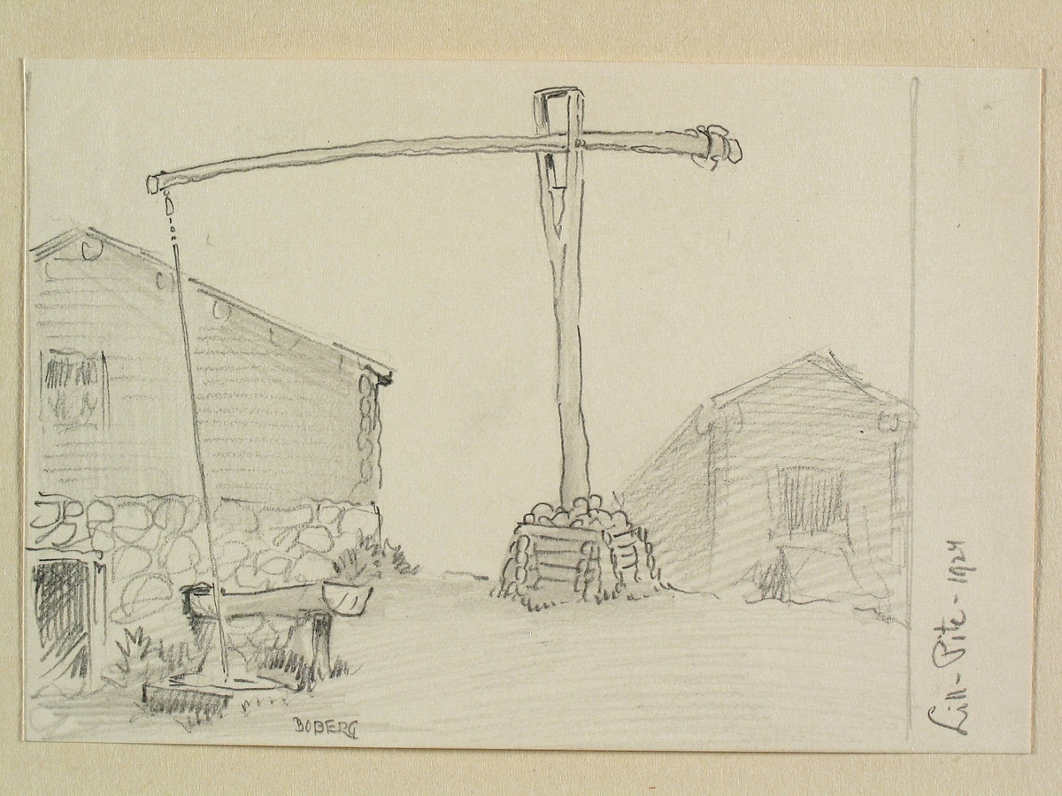 Norrbotten, Piteå landsförs., Lillpite. Gårdsbrunn. Teckning av Ferdinand Boberg