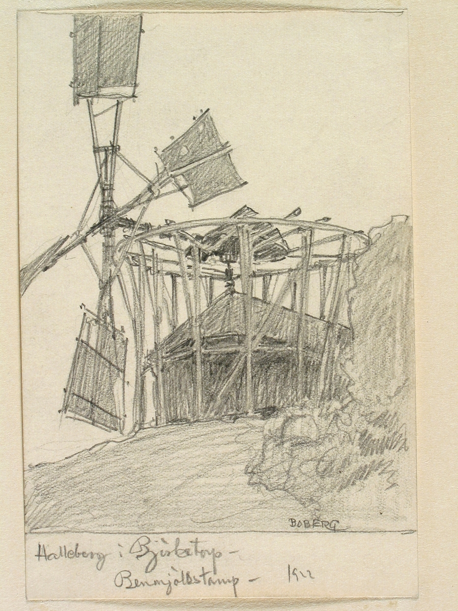 Västergötland, Bollebygds hd., Björketorps sn. Benmjölsstamp, Halleberg. Teckning av Ferdinand Boberg.
