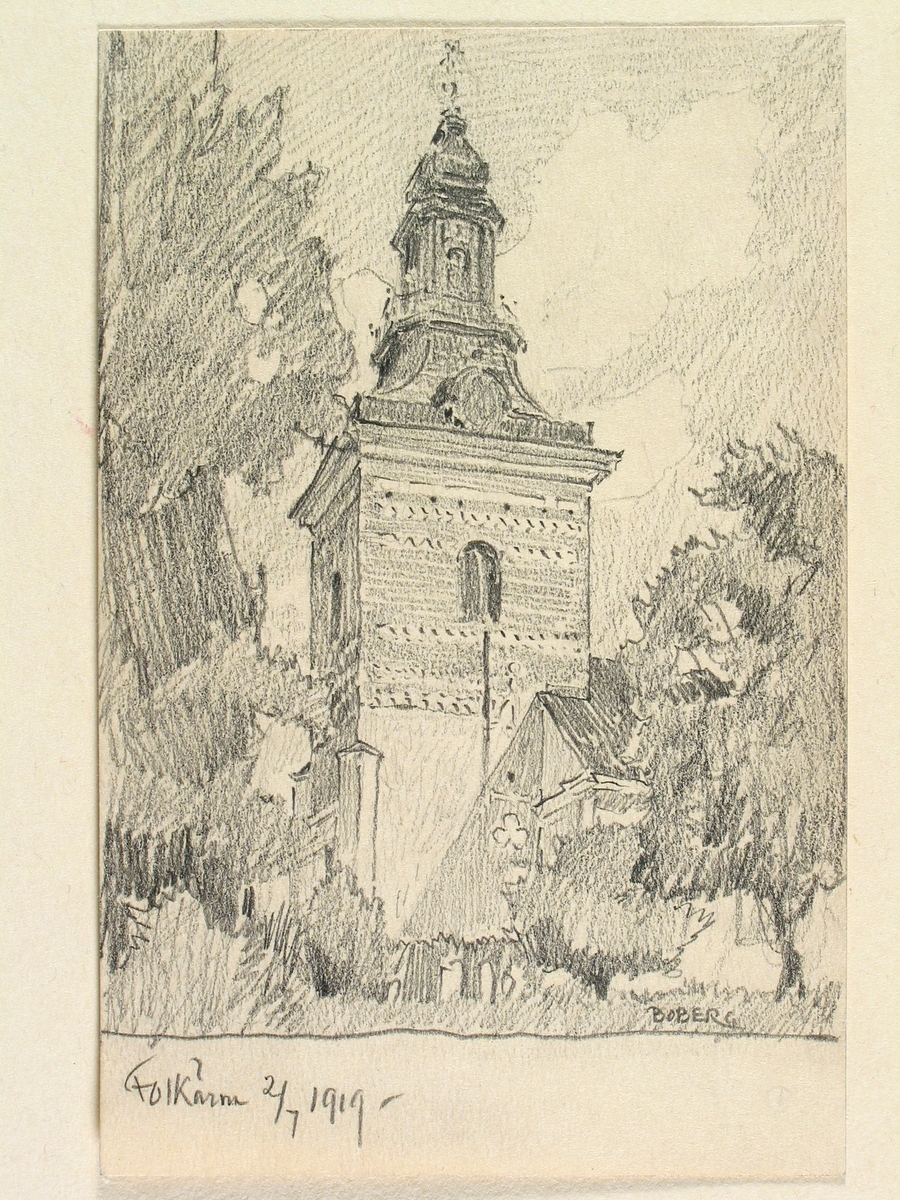 Teckning av Ferdinand Boberg. Dalarna, Folkhare hd., Folkärna sn., Folkärna kyrka