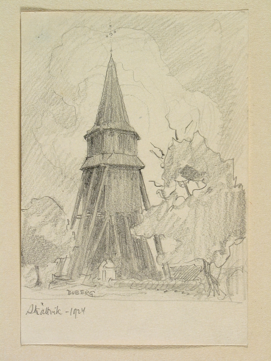 Teckning av Ferdinand Boberg. Östergötland, Hammarkinds hd., Skällviks kyrka, Stapeln