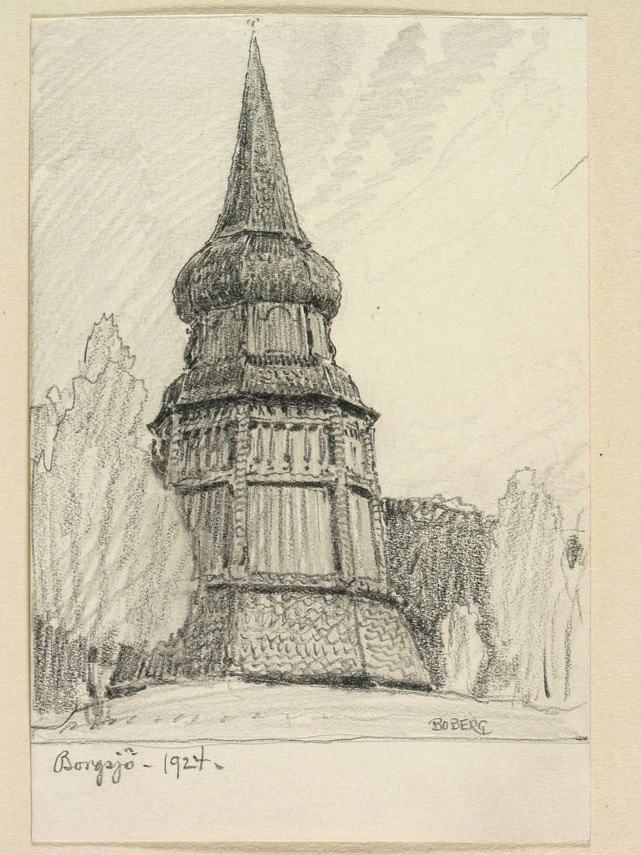 Teckning av Ferdinand Boberg. Medelpad, Borgsjö kyrka