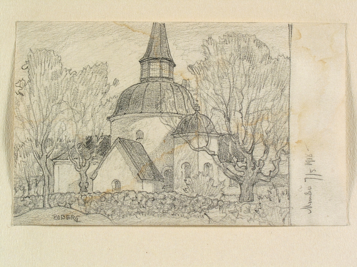 Teckning av Ferdinand Boberg. Uppland, Färentuna hd., Munsö kyrka