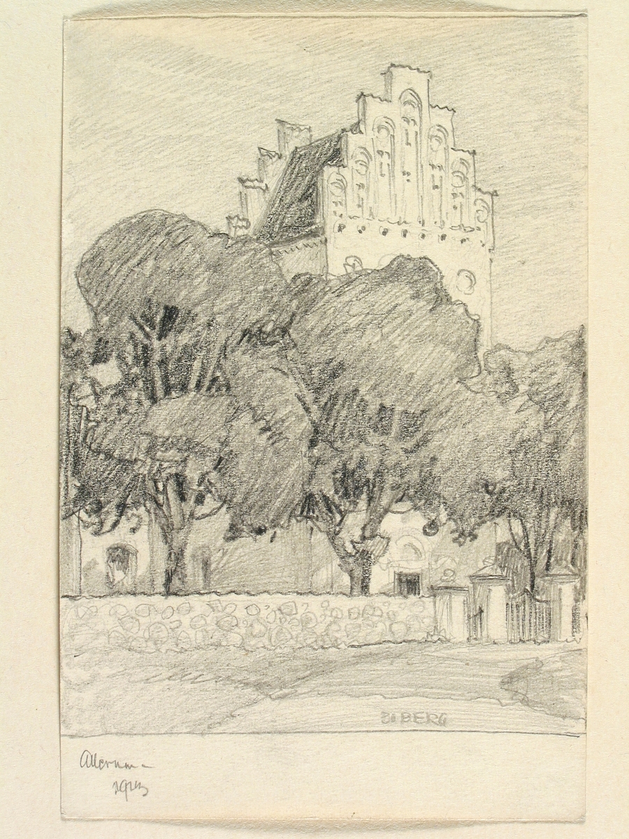 Teckning av Ferdinand Boberg. Skåne, Luggude hd., Allerums kyrka
